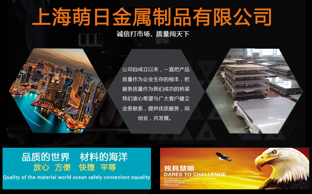上海萌日金屬制品有限公司一直致力于為國(guó)內(nèi)各大中型國(guó)有企業(yè),外資企業(yè),民營(yíng)獨(dú)資企業(yè),模具制造企業(yè),機(jī)械加工企業(yè),石油化工企業(yè)及器械企業(yè)等供應(yīng)各種特種鋼材,進(jìn)口/國(guó)產(chǎn)鋁合金,不銹鋼,合金結(jié)構(gòu)鋼,42CrMo鋼板,35CrMo鋼板,40Cr鋼板,合金圓鋼,中厚板,鍛件,法蘭,鋼帶,軸承鋼,易切鋼,不銹圓鋼,合金管,矩形鋁管,無(wú)縫鋁管,鋁管,工業(yè)鋁管進(jìn)口及國(guó)產(chǎn)方胚/鋼錠/鋁錠,應(yīng)用于機(jī)械,機(jī)電,造船,工程,煤礦,紡織,電力,鍋爐, 汽車工業(yè)等各個(gè)領(lǐng)域。我公司可以根據(jù)客戶對(duì)特殊材料的要求進(jìn)行材料和產(chǎn)品的定制,可按ISO,ANSI,JIS,DIN,GB等標(biāo)準(zhǔn)定制,我們將本著"誠(chéng)實(shí)守信,合作共贏,長(zhǎng)期合作"的理念與新老客戶一起進(jìn)步發(fā)展。